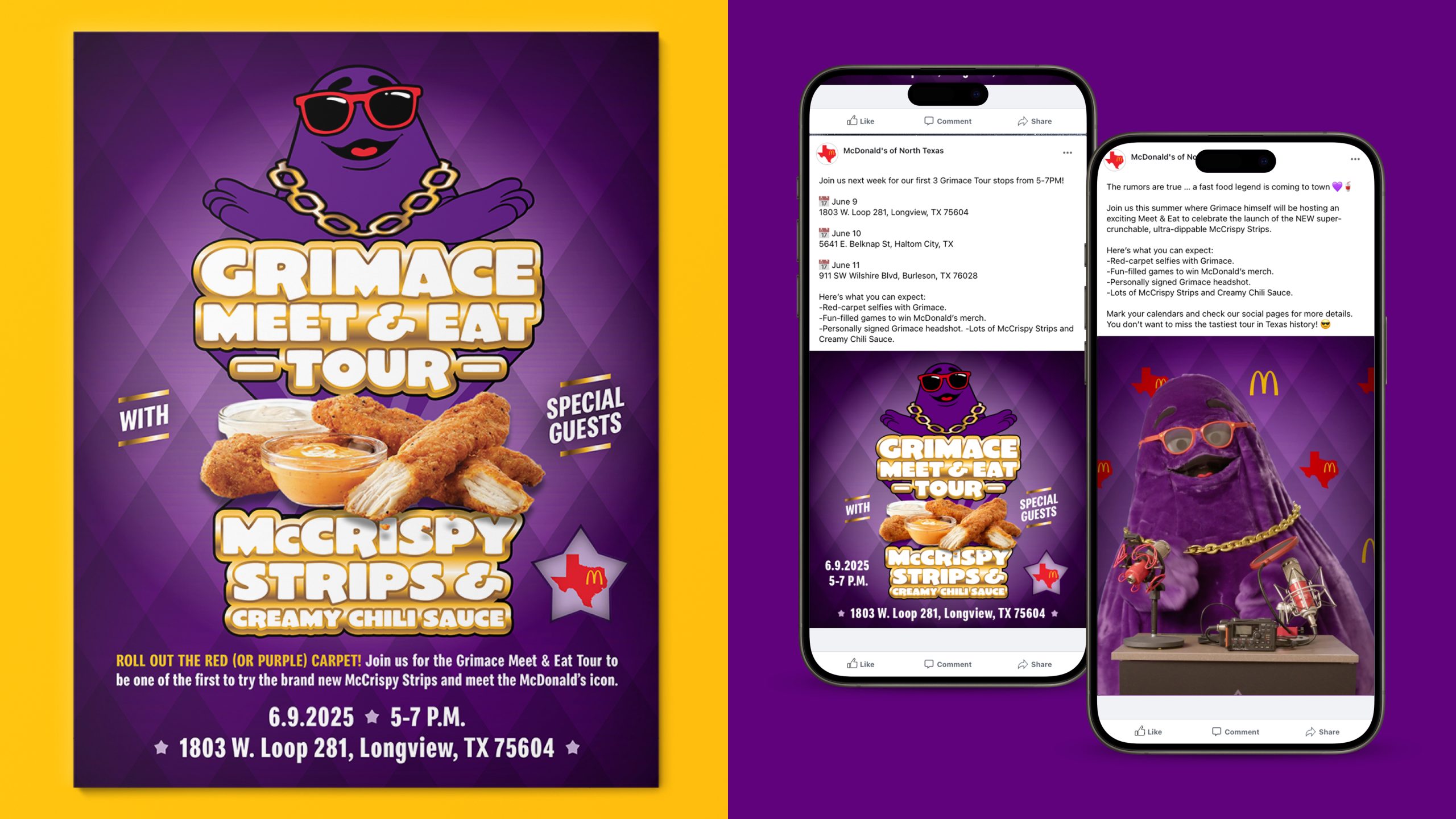 Trozzolo created a family-friendly tour featuring the iconic Grimace, complete with meet-and-greets, custom giveaways, music, and games. The experience generated excitement, increased foot traffic, and built buzz around the launch of the new McCrispy Strips.